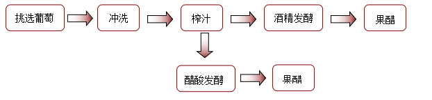 醋酸菌是一种好氧菌,只有当氧气充足时,才能进行旺盛生理活动。醋酸菌的 适生长温度为30~35℃,当氧气、糖源都充足时,醋酸菌将葡萄汁中的糖分解成醋酸;当缺少糖源时,醋酸菌将乙醇变为乙醇变为乙醛,再将乙醛变为醋酸: